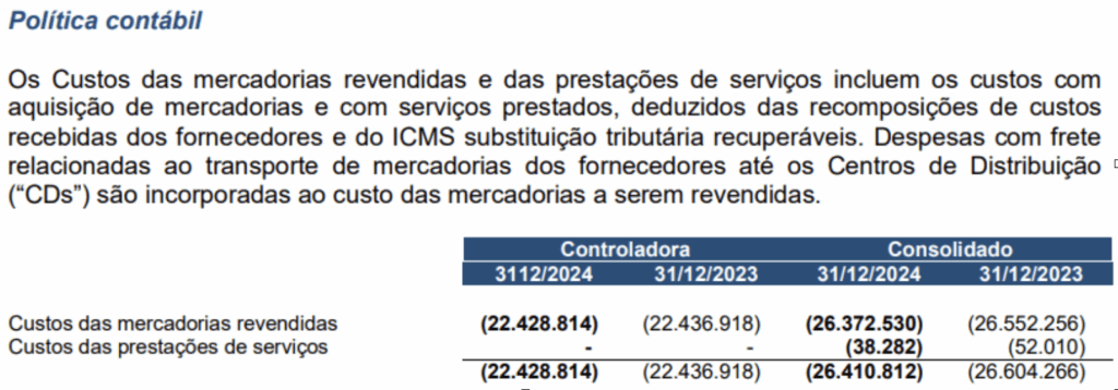 Exemplo de CMV de uma empresa de capital aberto – Magazine Luiza: